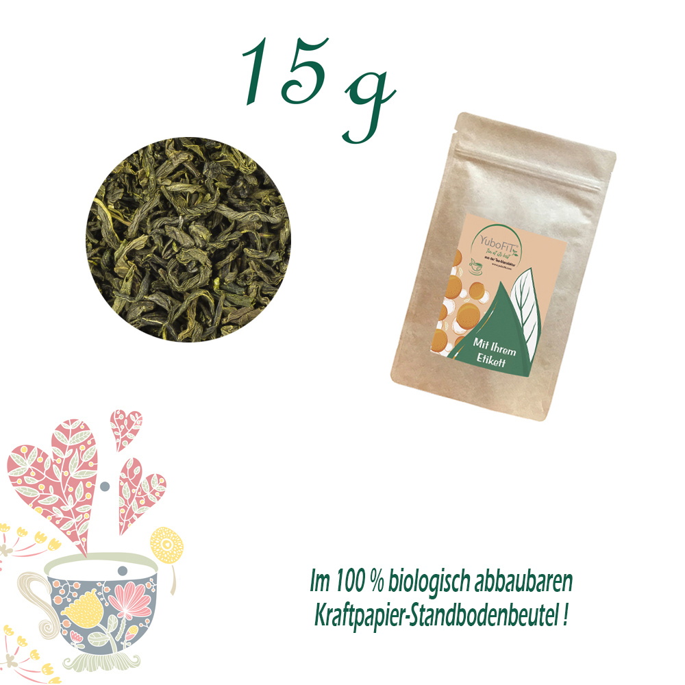Dieser Tee hat recht große und gedrehte, jadegrüne Blätter. Er hat einen leichten, frischen Geschmack mit einem Hauch von Süße und eine klare gelbe Tassenfarbe. Ein besonderer Genuss für Grüntee-Liebhaber.