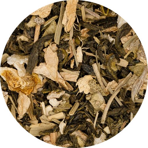 Grüner Tee Südkorea* (35 %), Ingwer* (31,5 %), Zitronengras*, kandierter Ingwer* (Rohrzucker*, Ingwer*) (Kann Spuren von Schwefeldioxid enthalten.) (11 %), Salbeiblätter*, Zitronenschale*, Zitronenöl*(* Zutaten aus kontrolliert biologischem Anbau)