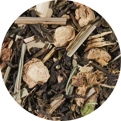 Grüner Tee* (63 %), Ingwerstücke*, Süßholzwurzel*, Zitronengras*, Krauseminze*(* Zutaten aus kontrolliert biologischem Anbau)