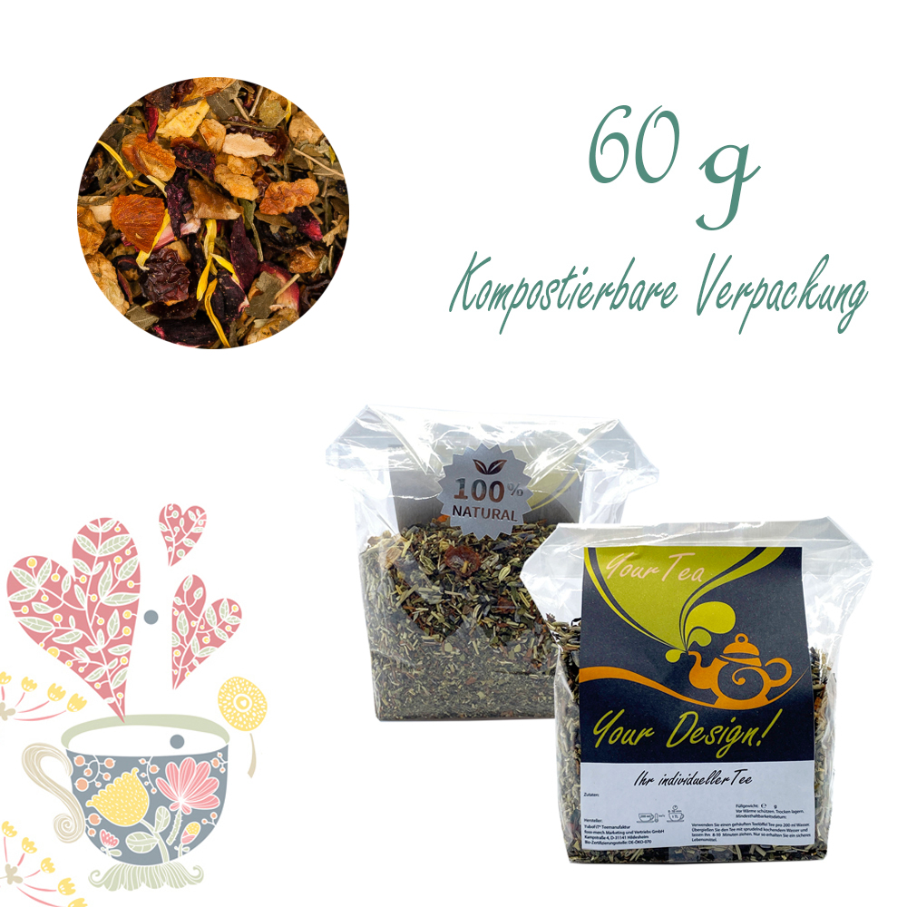 Kompostierbarer Zellglas-Beutel, Geprägtes Verschluss-Siegel aus Zuckerrohrpapier. Komplett abbaubar. Inhalt 60 g, Material: Zellglas