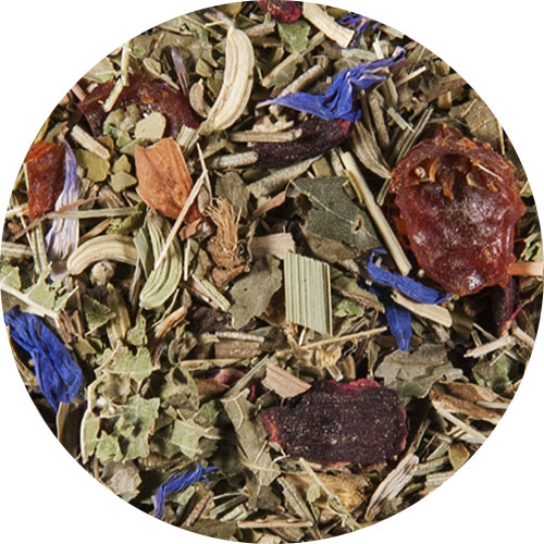Mate* (20 %), Hibiskusblüten*, Rosmarin*, Fenchel*, Zitronengras* (8 %), Süßholzwurzel*, Brombeerblätter*, Zitronenverbene* (5 %), Hagebuttenschalen*, Anis*, Kornblumenblüten*(* Zutaten aus kontrolliert biologischem Anbau)