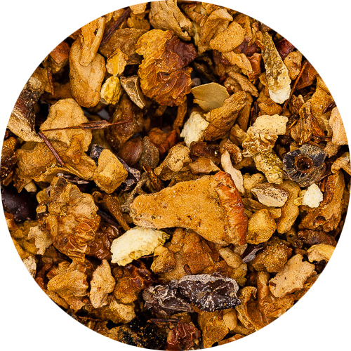 Apfel*, Rooibos* (12 %), Johannisbrot*, Orangenschalen*, Hagebuttenschalen*, Kakaobohnen*, Aroma, Orangenöl*, Vanillestücke* (* Zutaten aus kontrolliert biologischem Anbau)