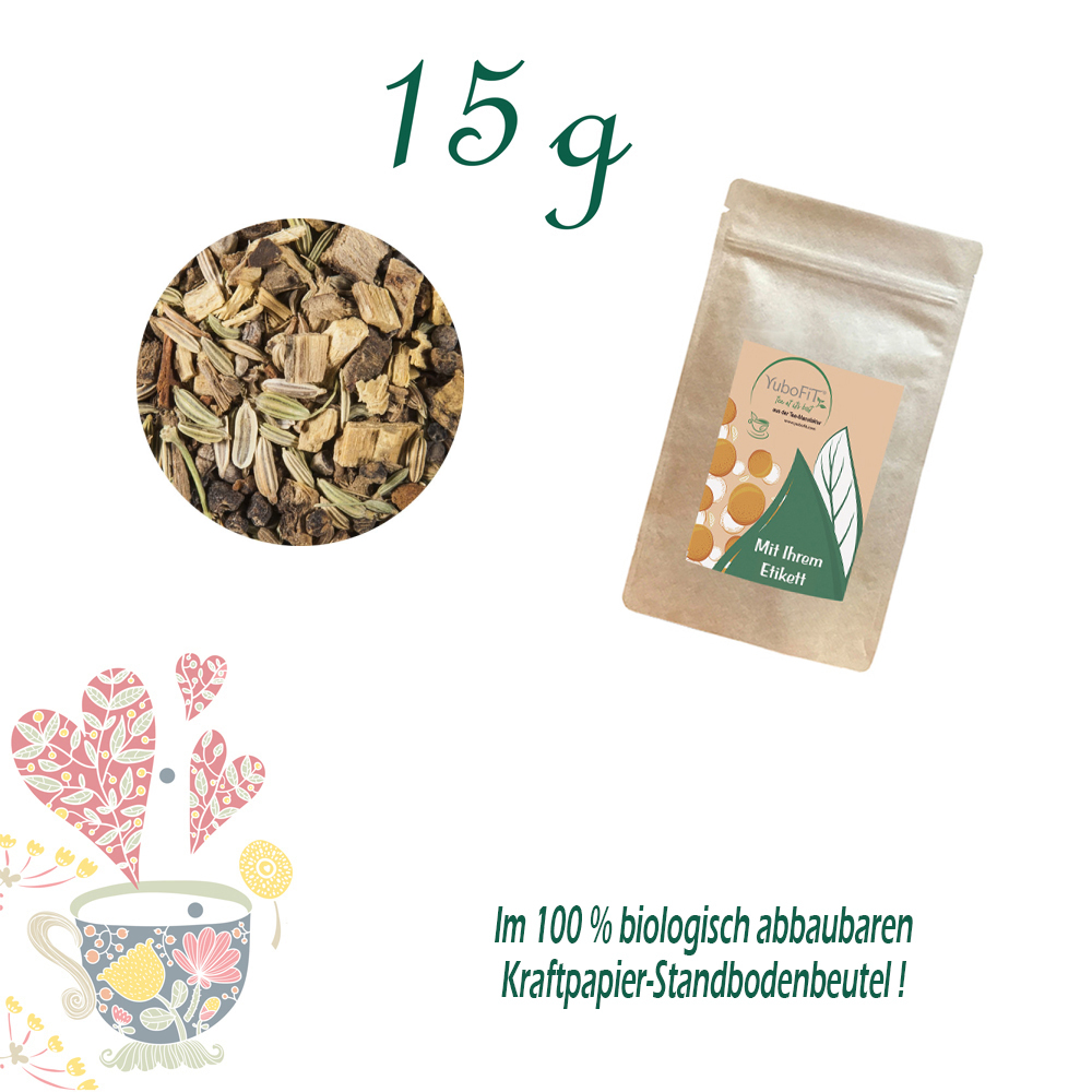 Zutaten: Fenchel Bio, Ingwer Bio, Kardamom Bio, Pfeffer Bio, Süßholzwurzel, Süßholzwurzel Bio, Zimt Bio