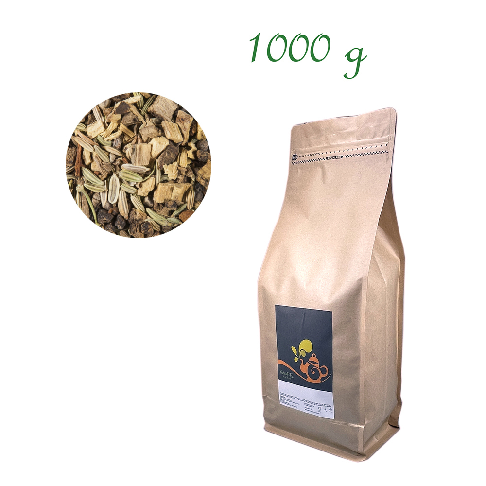 Zutaten: Anis*, Süßholzwurzel*, Fenchel*, Kardamomsaat*, schwarzer Pfeffer*, Zimt*, Ingwer*, Gewürznelken*(* Zutaten aus kontrolliert biologischem Anbau) Enthält Süßholzwurzel - bei Bluthochdruck sollte ein übermäßiger Verzehr dieses Erzeugnisses vermieden werden.