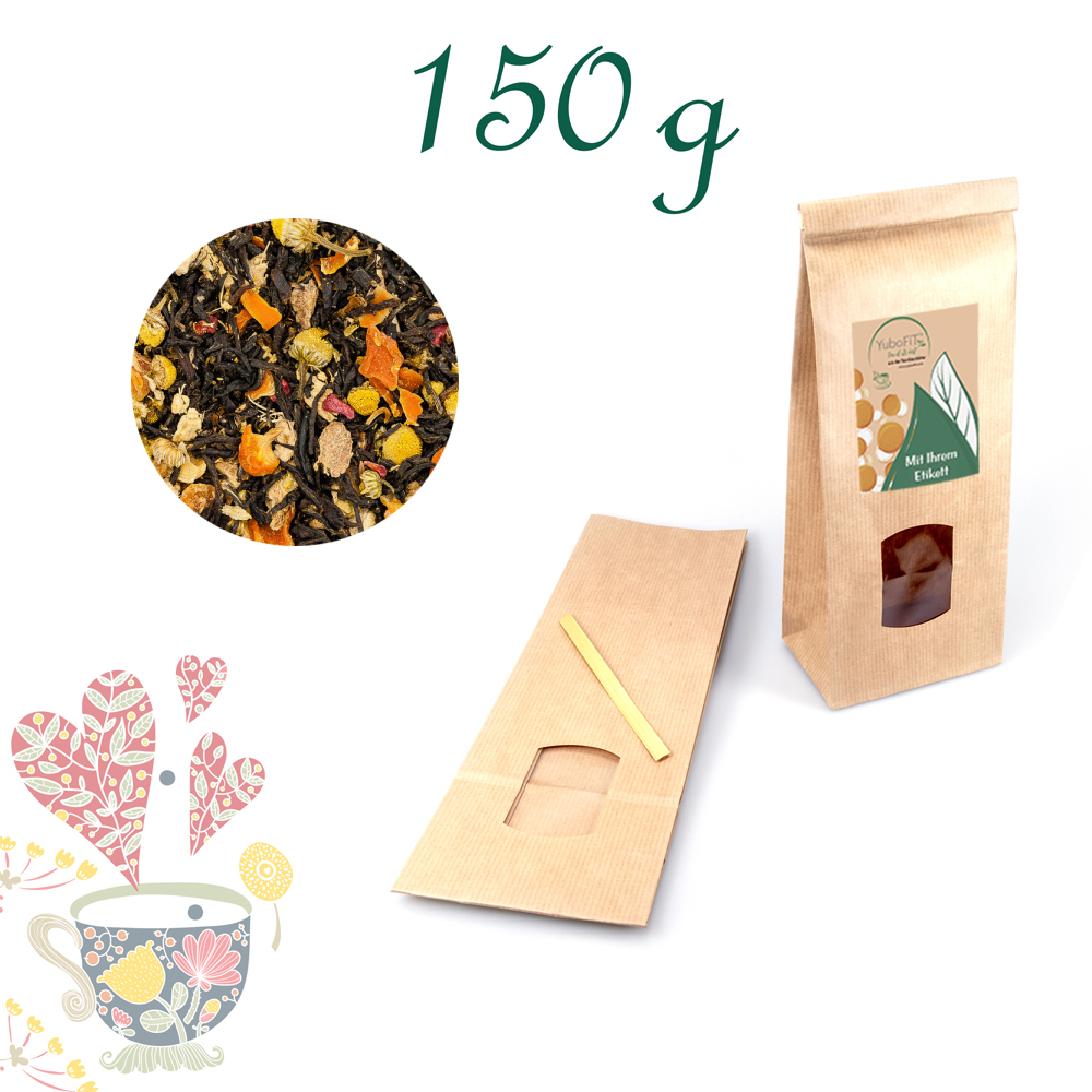 Schwarzer Tee*, Ingwer*, Karotte*, Kamille*, Himbeeren*, Limettenöl* (* Zutaten aus kontrolliert biologischem Anbau)
