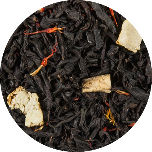 Schwarzer Tee, Orangenschalen, natürliches Orangenaroma, Färberdistelblüten