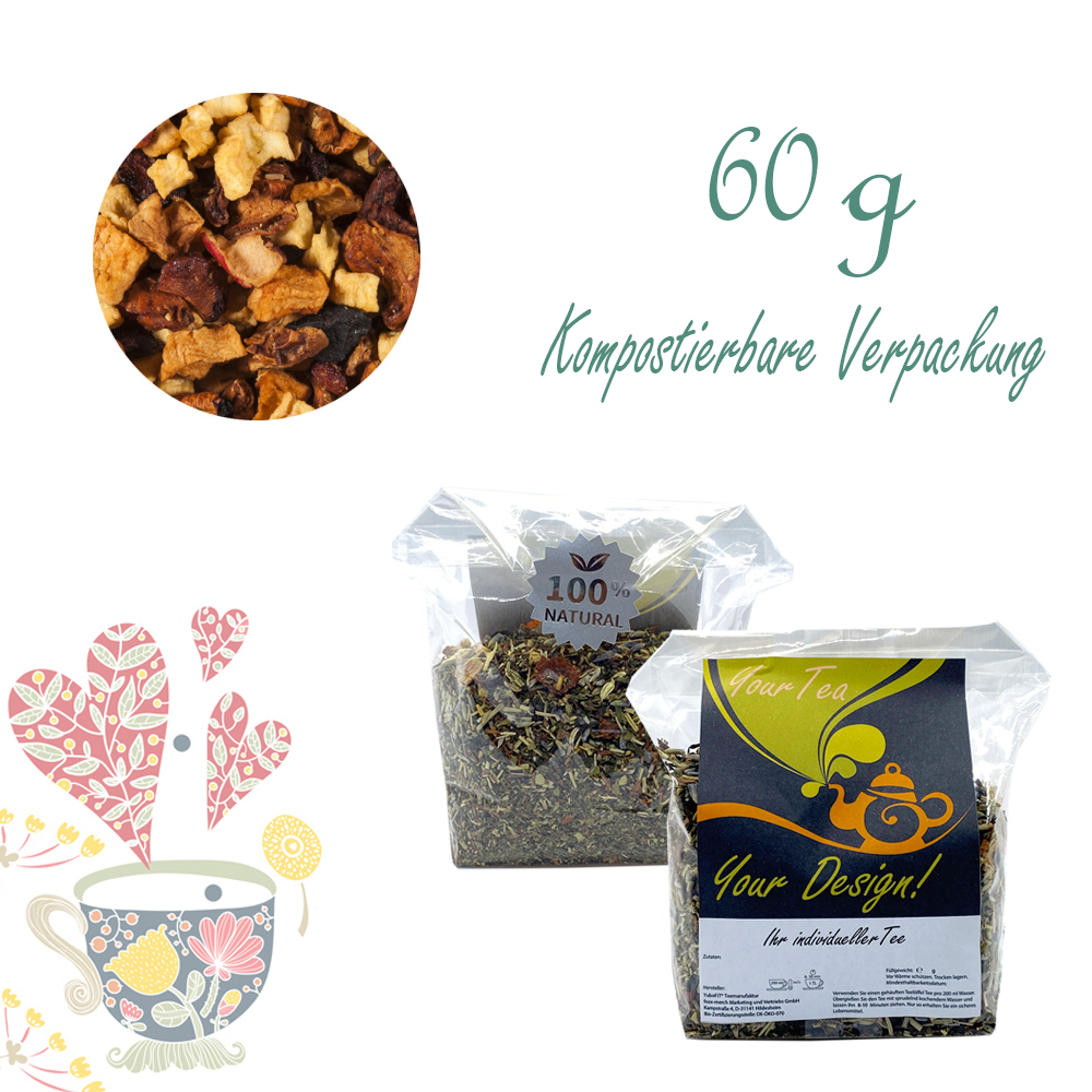 Ausführung: Verpackung: Kompostierbarer Zellglas-Beutel, Geprägtes Verschluss-Siegel aus Zuckerrohrpapier. Komplett abbaubar. Inhalt 60 g