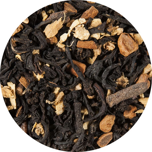 Schwarzer Tee (65 %), Ingwerstücke, Zimtstücke, Aromen, Kardamomsaat, Gewürznelken