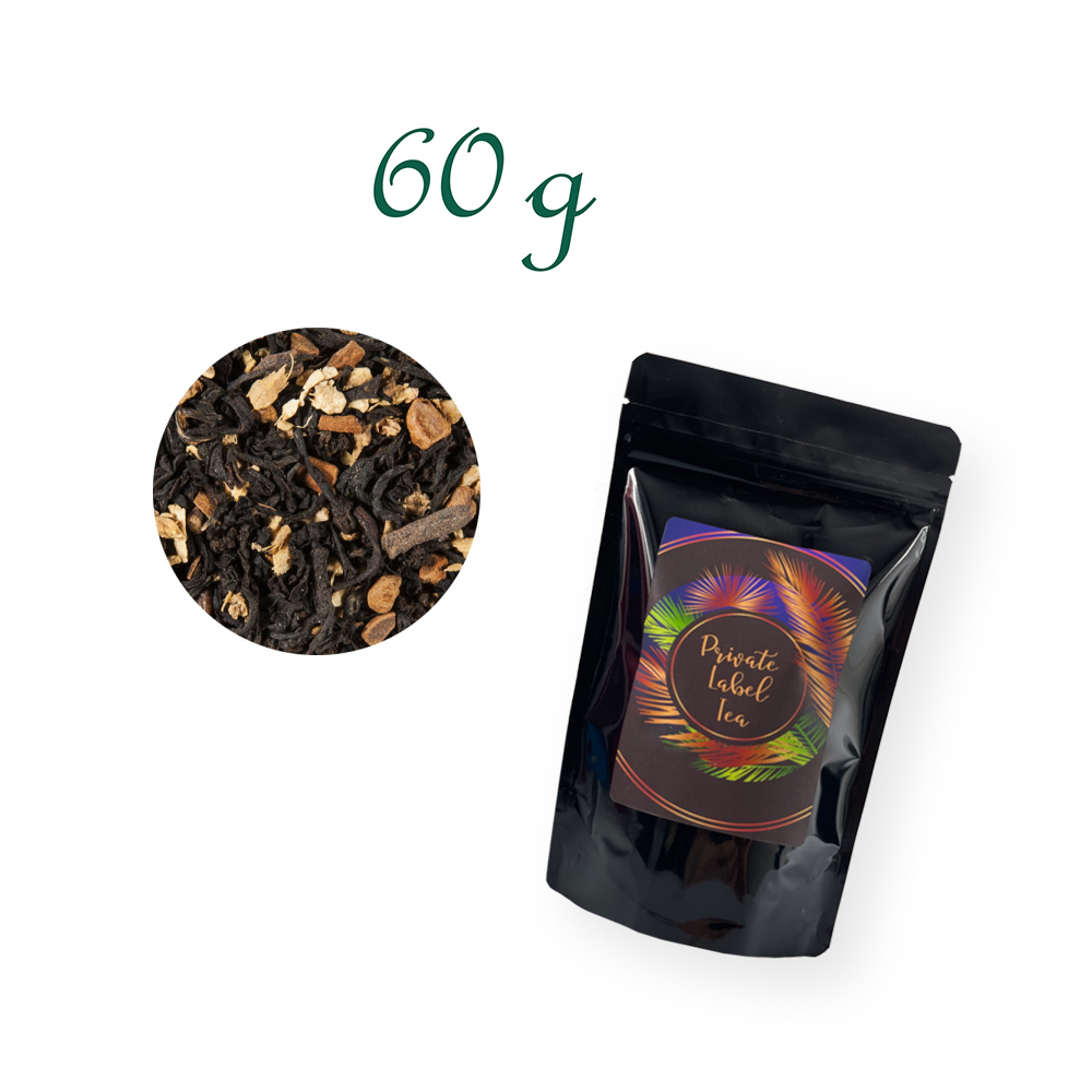 Schwarzer Tee (65 %), Ingwerstücke, Zimtstücke, Aromen, Kardamomsaat, Gewürznelken