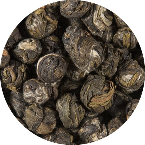 Diese kleinen Jasminperlen sind eine ganz besondere chinesische Grüntee-Spezialität. Nur die jüngsten und zartesten Teeblätter werden mehrfach mit jeweils frisch gepflückten, intensiv duftenden Jasminblüten versetzt, die anschließend wieder entfernt werden. Dann werden die duftende Blätter von Hand zu kleinen, festen Perlen gerollt. Dadurch wird der Jasminduft umschlossen und entfaltet seinen köstlichen Wohlgeruch und Geschmack erst wieder nach dem Aufgießen. Seine hell bernsteinfarbene Tassenfarbe und sein Aroma sind einfach wunderbar. Ein wahres Vergnügen für die Augen, die Nase und den Gaumen!