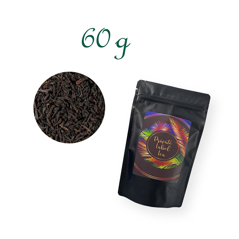 Standbodenbeutel, Aromabeutel, matt-schwarz, ohne Fenster, Inhalt 60 g, Material: 15µ matt BOPP / 12µ MET-PET / 85µ LLDPE PET