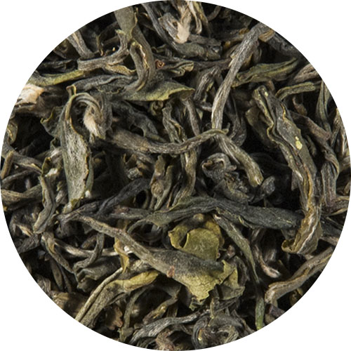 Dieser exquisite grüne Blatttee stammt aus der bergigen Provinz Yunnan im Südwesten Chinas. Der weiße Flaum an den vielen Knospen und den Blattunterseiten lässt diesen schönen Tee eher silbrig-weiß als grün erscheinen. Die typisch großen Teeblätter sind leicht gedreht und gekräuselt. Der Aufguss ist frisch, leicht und aromatisch mit einem zart-blumigen Charakter. Dieser Tee lässt keine Wünsche offen.