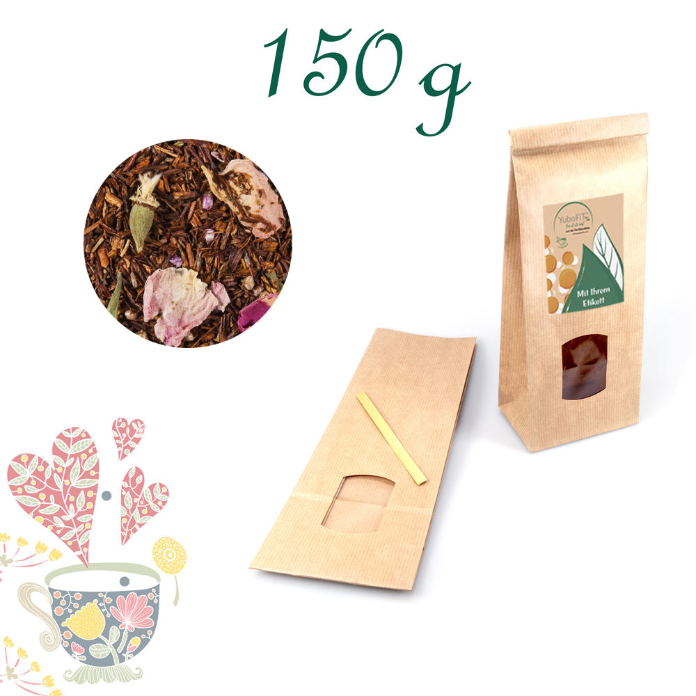 Farbige Blütenakzente machen die fruchtig-cremige Rooibos-Mischung auch zu einem Augenschmaus.