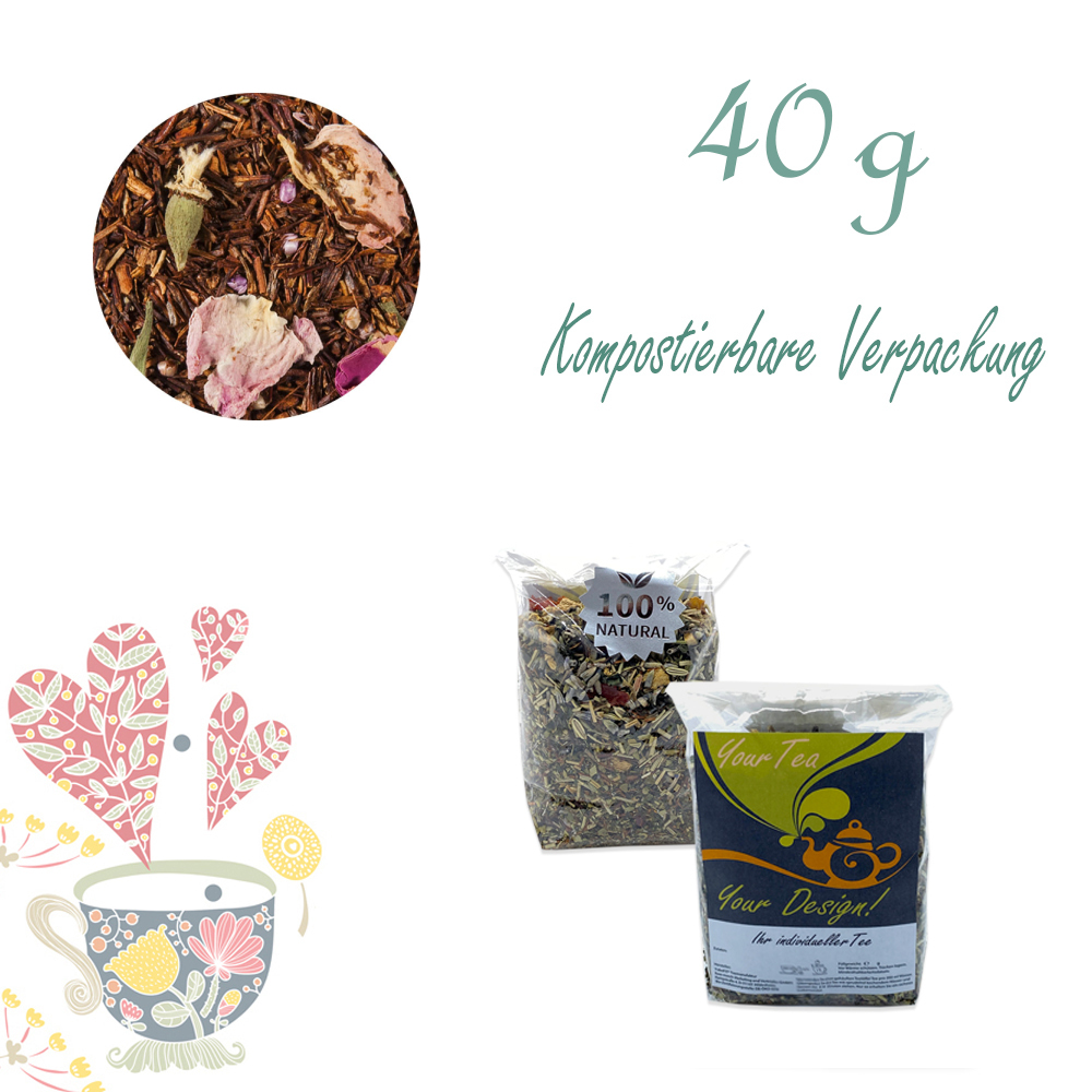 Farbige Blütenakzente machen die fruchtig-cremige Rooibos-Mischung auch zu einem Augenschmaus.