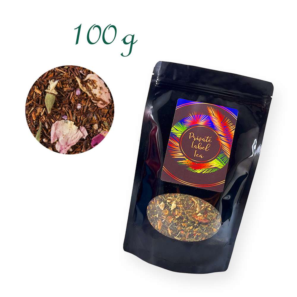 Farbige Blütenakzente machen die fruchtig-cremige Rooibos-Mischung auch zu einem Augenschmaus.