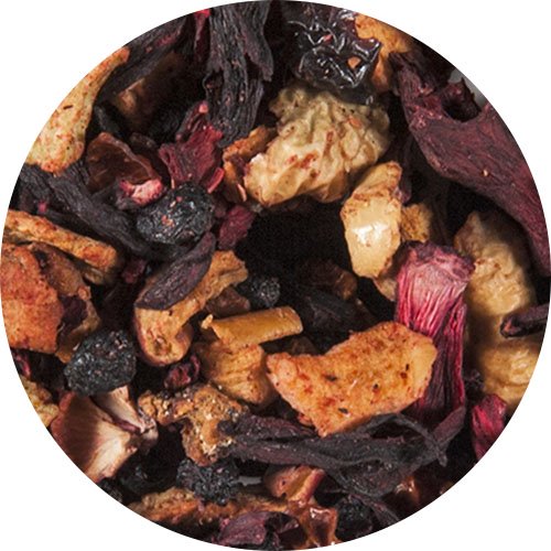 Hibiskusblüten, Apfelstücke, Holunderbeeren, Hagebuttenschalen, Aromen, Kiwistücke (2 %), Erdbeerstücke (2 %)
