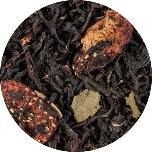 Schwarzer Tee, Aromen, Walderdbeerblätter, Erdbeerscheiben (2 %) , Erdbeerfruchtgranulat (Glukosesirup, Erdbeeren, Fructose, modifizierte Stärke, Verdickungsmittel: E401) (1 %)