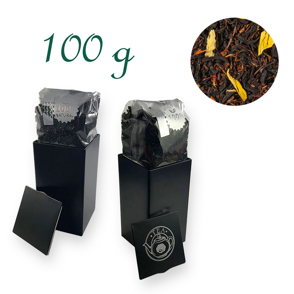 Rooibos (48 %), Schwarzer Tee (48 %), Aromen, Sonnenblumenblüten, Färberdistelblüten