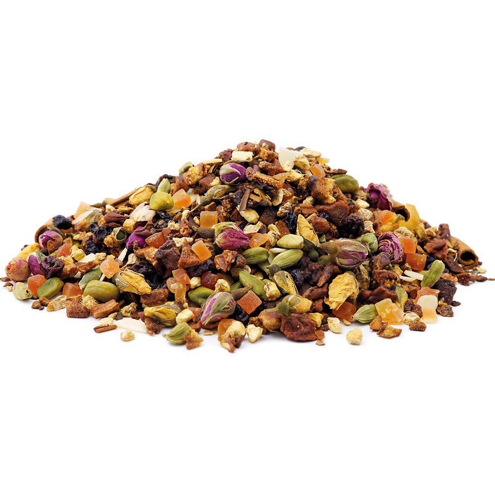 Birnenstücke (25%), Zimtstücke (15%), Ingwer, Korinthen, Papayastücke (Papaya, Zucker), Kardamom, Rosenknospen, Aroma, PISTAZIEN (3%), Zimtstangen (3%), MANDELSTÜCKE, Säuerungsmittel: Weinsäure.