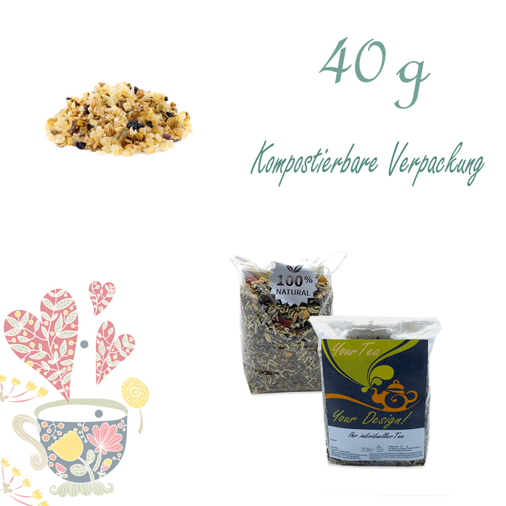 Kompostierbarer Zellglas-Beutel, Geprägtes Verschluss-Siegel aus Zuckerrohrpapier. Komplett abbaubar. Inhalt 40 g, Material: Zellglas