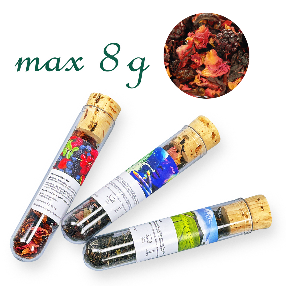 Hibiskusblüten, Korinthen, Holunderbeeren, Attichbeeren, Aroma, Rosenblütenblätter, Schwarze Johannisbeeren, natürliches Aroma, Brombeeren, Heidelbeeren (Heidelbeeren, Zucker).