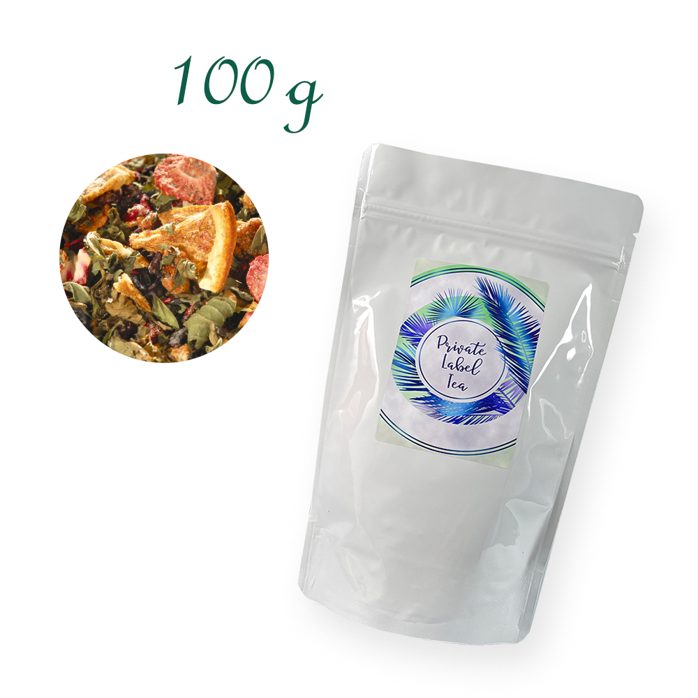 Apfelstücke, Hibiskusblüten, Pfefferminze (19%), Orangenecken, Aroma, Erdbeerscheiben (2%), Säuerungsmittel: Weinsäure.