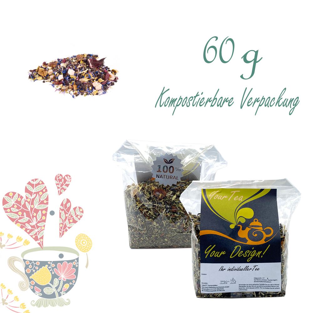 Kompostierbarer Zellglas-Beutel, Geprägtes Verschluss-Siegel aus Zuckerrohrpapier. Komplett abbaubar. Inhalt 60 g, Material: Zellglas