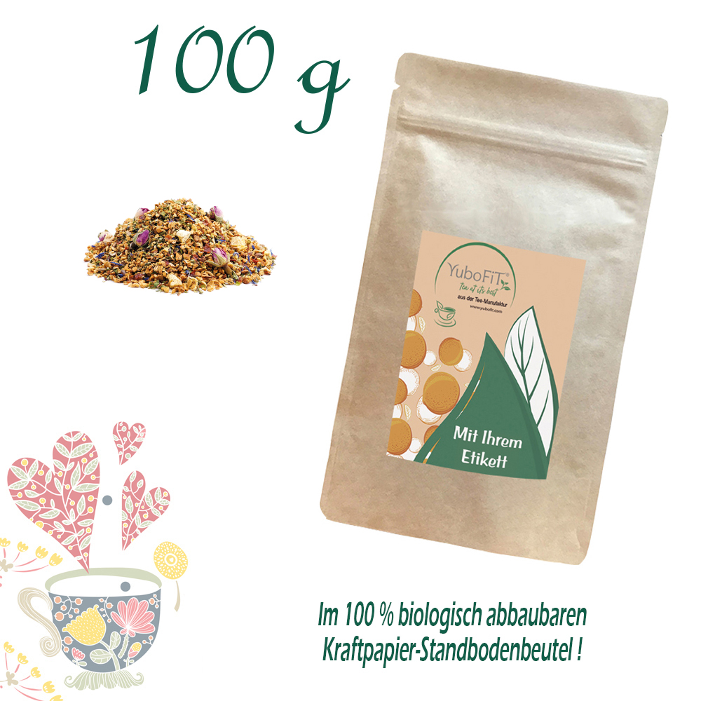 Der Standbodenbeutel ist 100 % kompostierbar und biologisch abbaubar ist und ist zertifiziert nach der Europäischen Norm EN 13432.