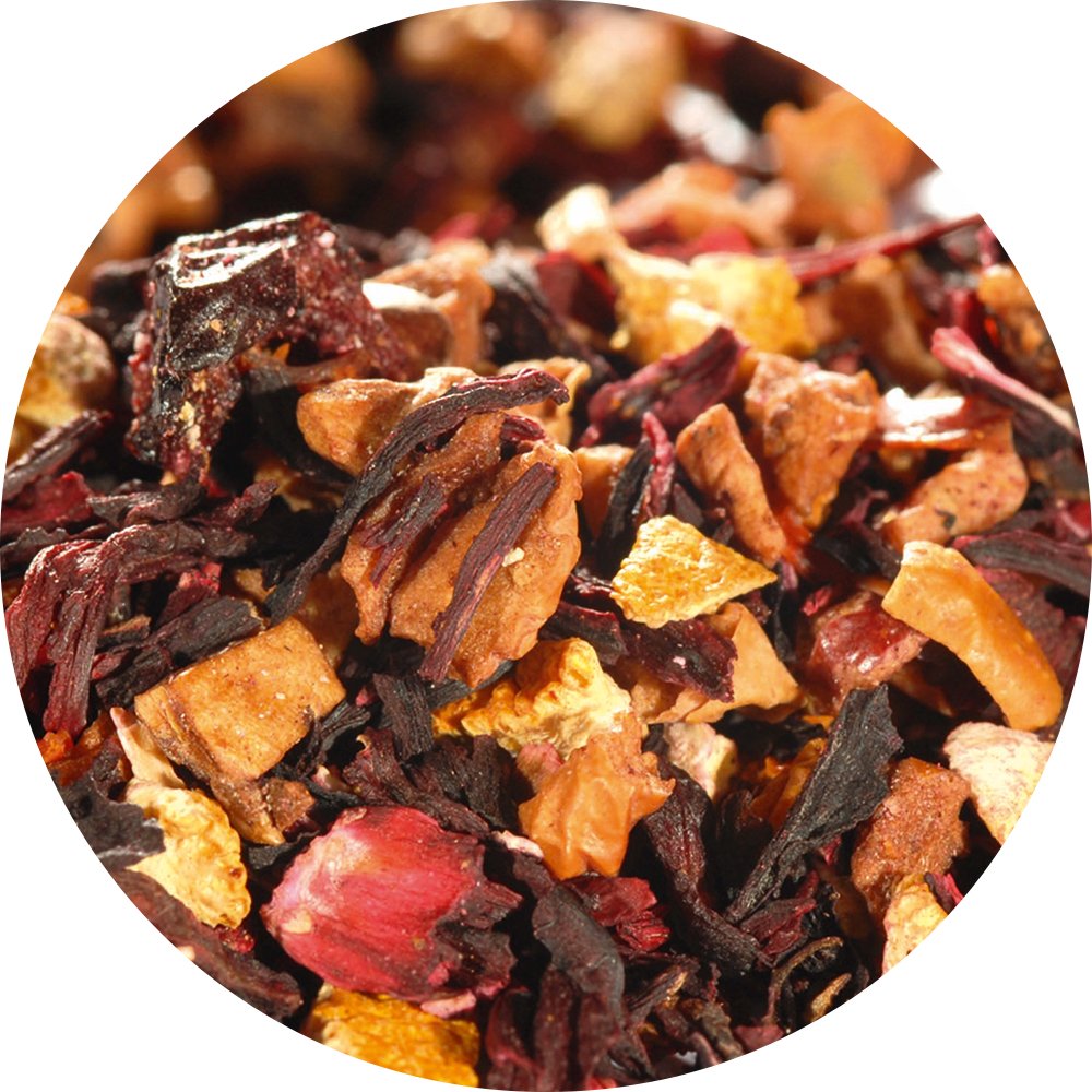 Apfelstücke, Hibiskusblüten, Orangenschalen, Hagebuttenschalen, Aroma, Sauerkirschen (1%).