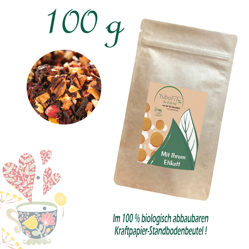 Apfelstücke, Hibiskusblüten, Orangenschalen, Hagebuttenschalen, Aroma, Sauerkirschen (1%).