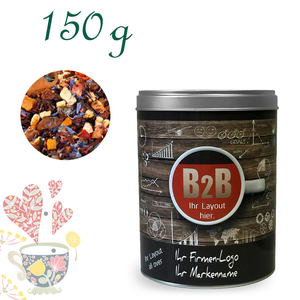 Apfelstücke, Hibiskusblüten, Orangenschalen, Hagebuttenschalen, Pflaumenstücke (8%), Zimtstangen (8%), natürliches Aroma, Kornblumenblüten, Zimtstücke (1%), Aroma, natürliches Nelken-Aroma.