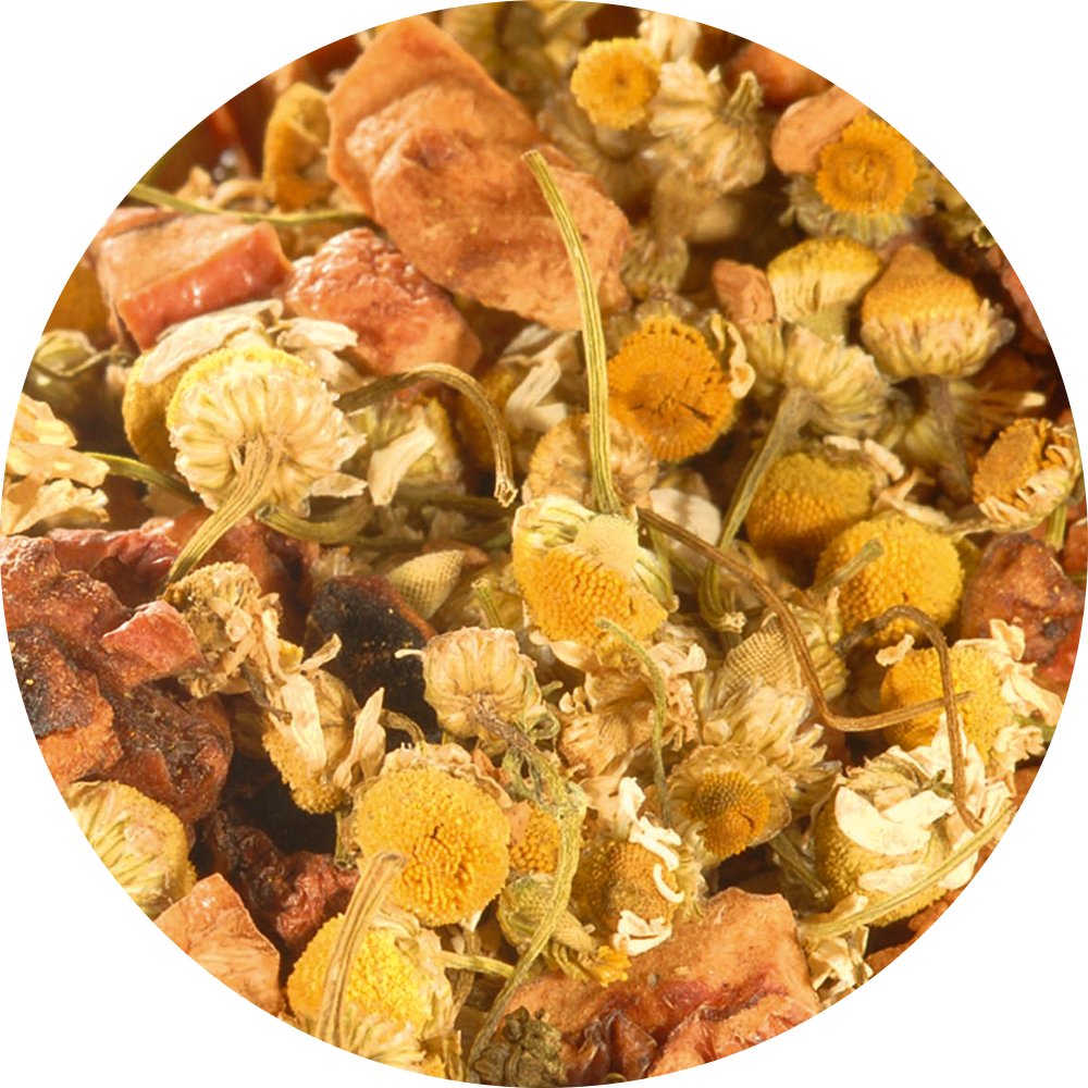 Apfelstücke (67%), Kamillenblüten (20%), Zimtstücke (10%), Aroma.