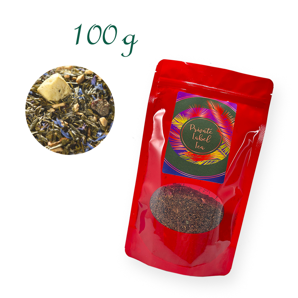 Grüner Tee (71%), gesäuerte Apfelstücke (10%) (Äpfel, Antioxidationsmittel: Ascorbinsäure, Salz, Säuerungsmittel: Zitronensäure), Korinthen, Marzipanstücke (5%) (MANDELN, Zucker), Zimtstücke, Aroma, Kornblumenblüten.