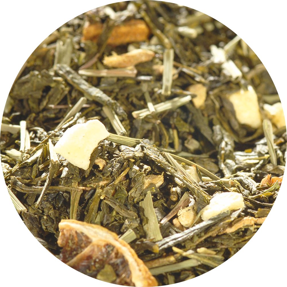 Grüner Tee (75%), Zitronengras, Ingwer (7%), Zitronenecken (4%), natürliches Aroma, Zitronenschalen (2%), Aroma.