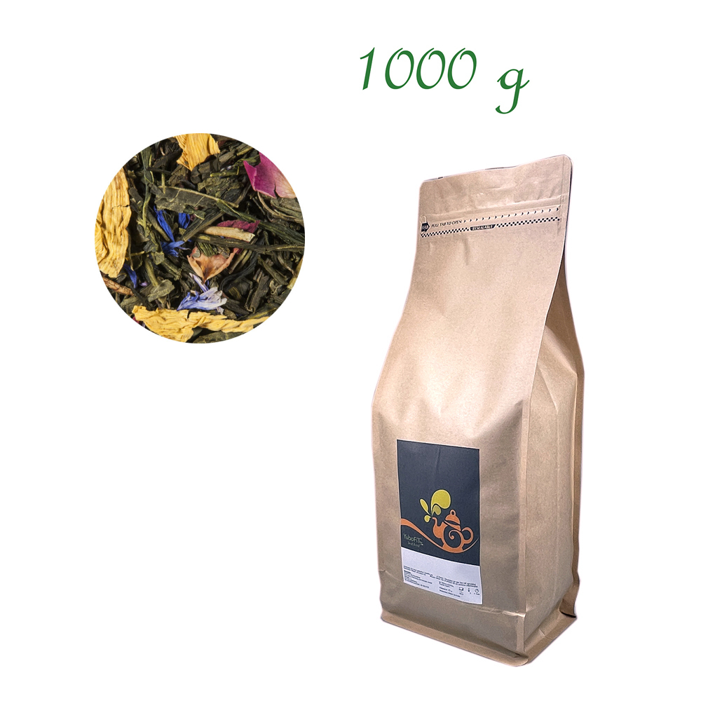 Grüner Tee China Sencha, Aromen, Kornblumenblüten, Rosenblütenblätter, Sonnenblumenblüten