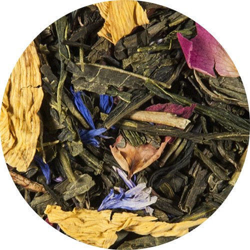 Grüner Tee China Sencha, Aromen, Kornblumenblüten, Rosenblütenblätter, Sonnenblumenblüten