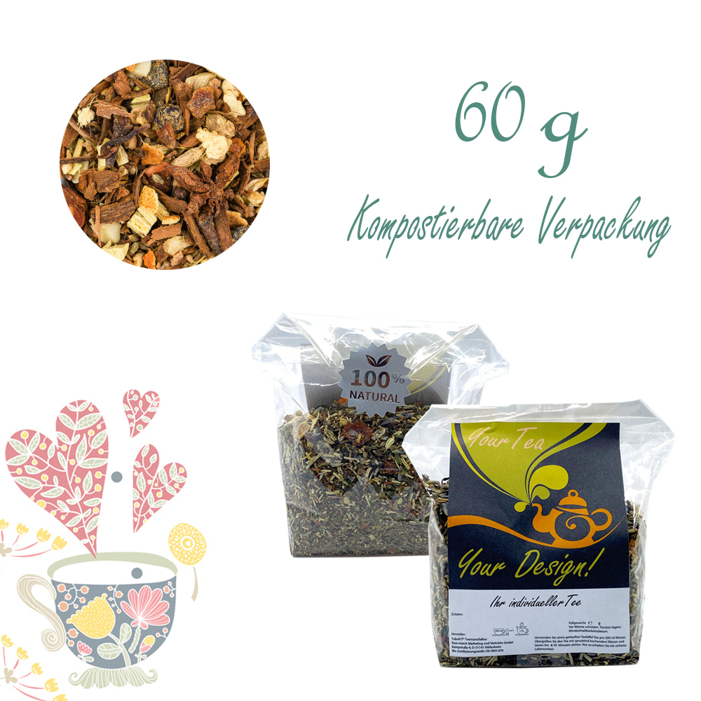 Beuteltee Hüttenzauber, ca. 2,5g, Werbekarte A6 gefaltet