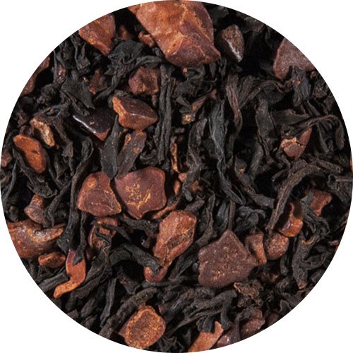 Schwarzer Tee (53 %), gehackte Kakaobohnen (39 %), Schokoladenplättchen (Zucker, Kakaobestandteile, Emulgator: Sojalecithin) (5 %), AromenKann Spuren von Milch enthalten.