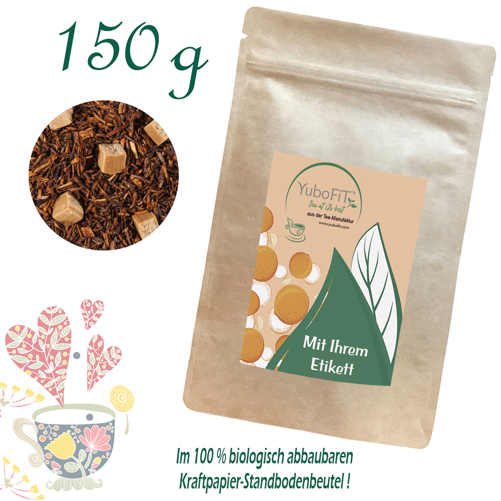 Rooibos, Karamellstücke (gezuckerte Kondensmagermilch, Zucker, Glukosesirup, Butterfett, Feuchthaltemittel: E420, Emulgator: E471) (10 %), Aromen