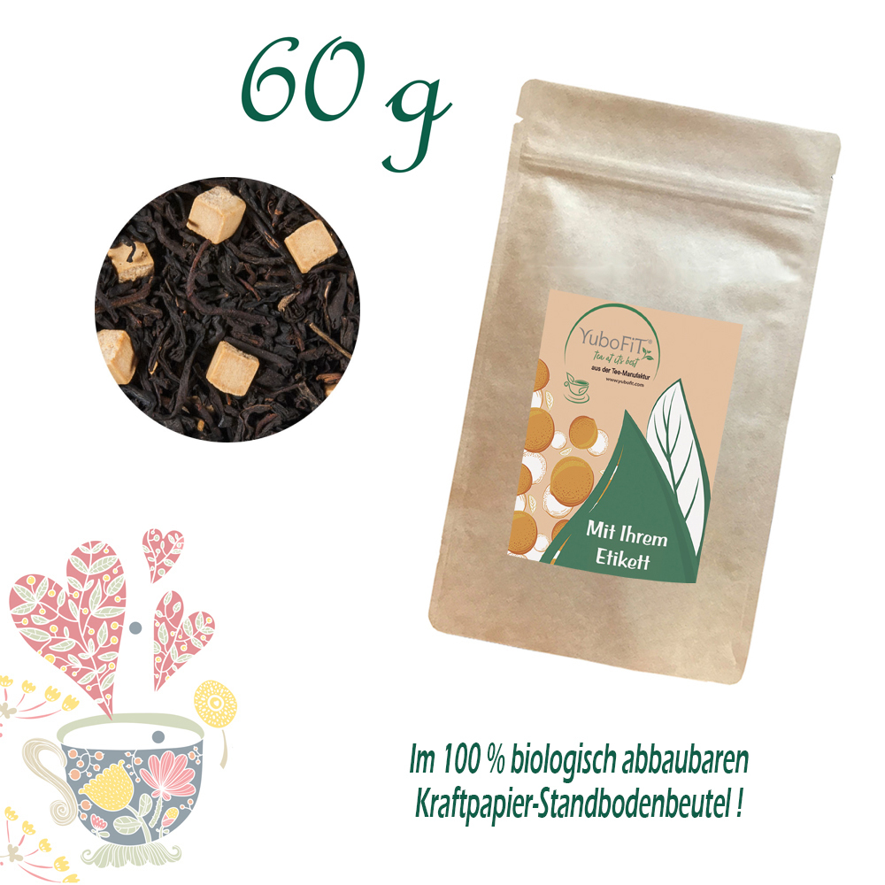 Schwarzer Tee (88 %), Karamellstücke (gezuckerte Kondensmagermilch, Zucker, Glukosesirup, Butterfett, Feuchthaltemittel: E420, Emulgator: E471) (10 %), Aromen