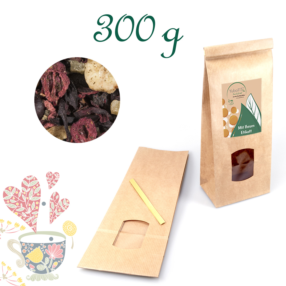 Aroma, Bananenchips, Brombeerblätter, Cranberry, Hibiskus, Korinthen, Sauerkirschen