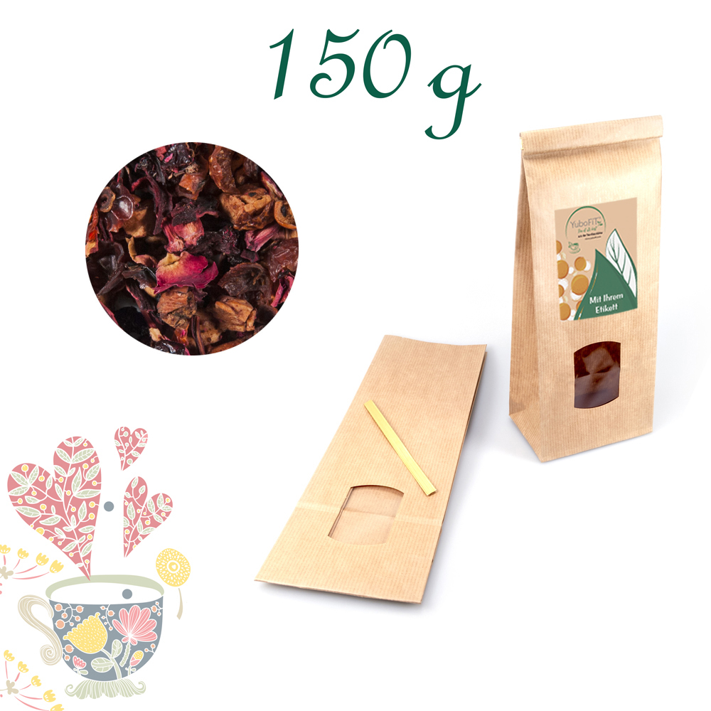 Apfelstücke, Hibiskusblüten, Hagebuttenschalen, Sauerkirschen (7 %), Aromen, Rosenblütenblätter