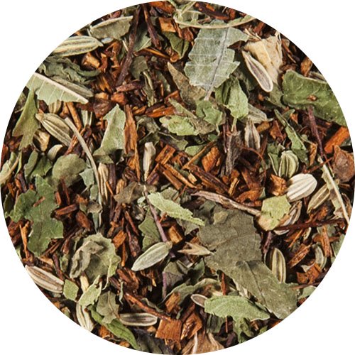 Rooibos, Fenchel, Süßholzwurzel, Zitronenverbene, Pfefferminze, Brombeerblätter, Zimt