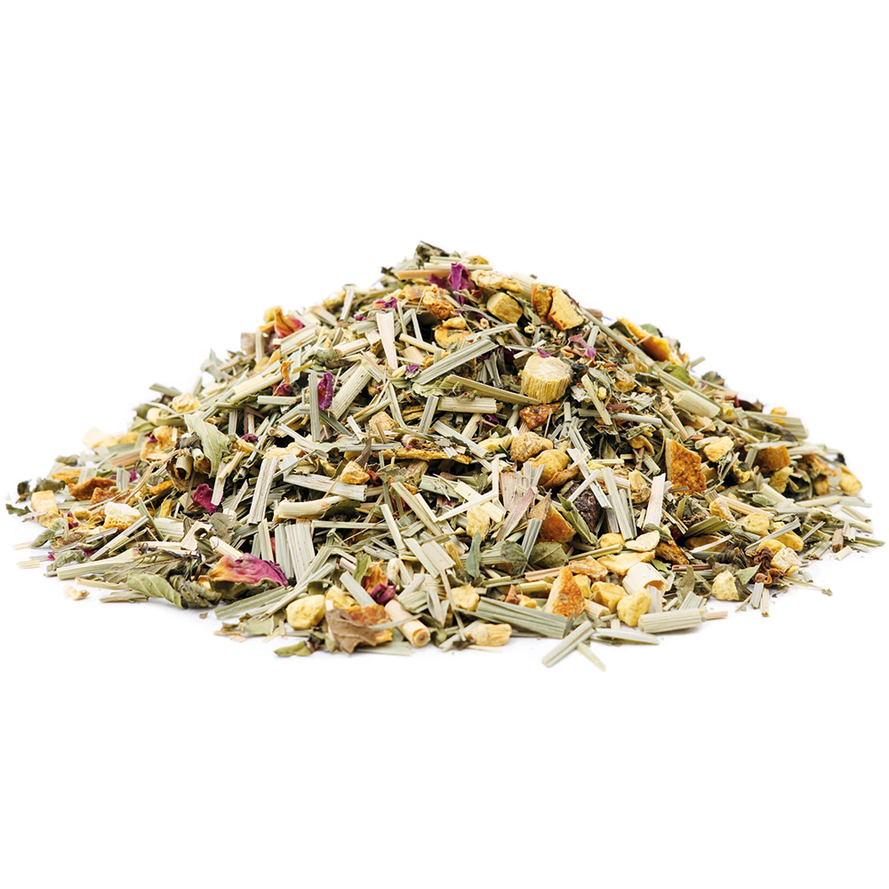 Ingwer (30%), Zitronengras (30%), Süßholz, Pfefferminze, Zitronenschalen (9%), Orangenschalen, Rosenblütenblätter. Enthält Süßholz – bei hohem Blutdruck sollte ein übermäßiger Verzehr dieses Erzeugnisses vermieden werden.