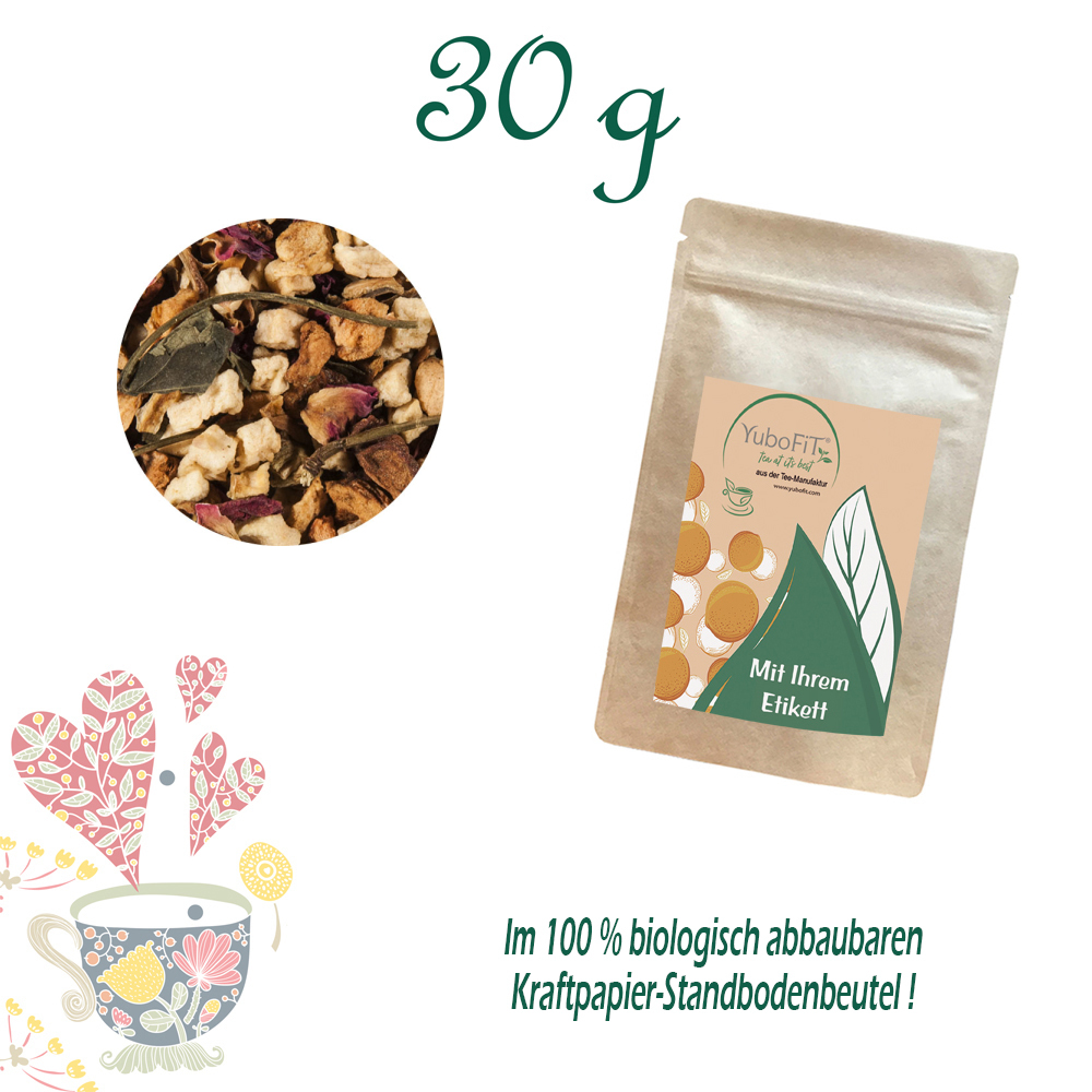 Apfelstücke, weißer Hibiskus, süße Brombeerblätter, natürliches Aroma, Rosenblütenblätter