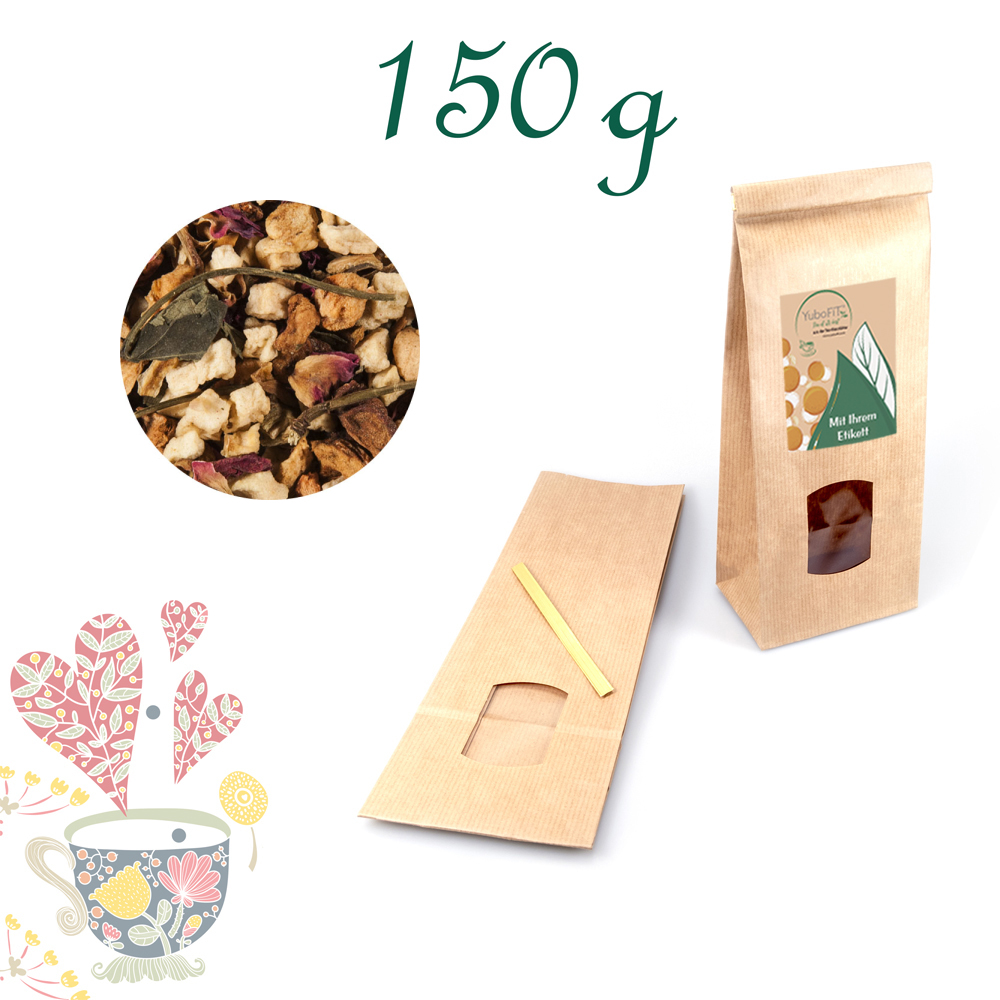 Apfelstücke, weißer Hibiskus, süße Brombeerblätter, natürliches Aroma, Rosenblütenblätter