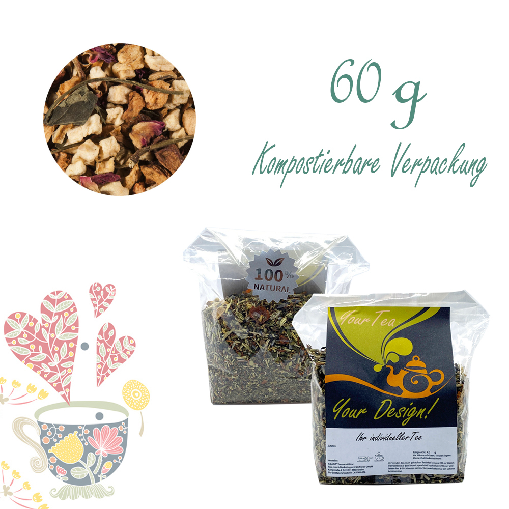 Apfelstücke, weißer Hibiskus, süße Brombeerblätter, natürliches Aroma, Rosenblütenblätter