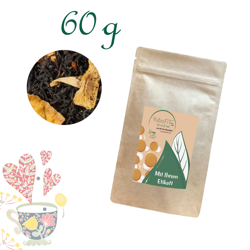 Schwarzer Tee (82 %), Mangoflocken (6 %), Chilipulver (4 %), Ananasstücke (Ananas, Zucker) (4 %), Aromen