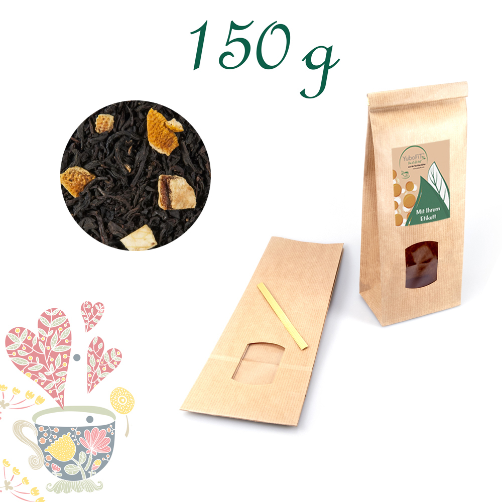 Bei dieser Komposition findet die feine, ausgewogene Orangennote im Schwarztee ihren kräftigen Partner.