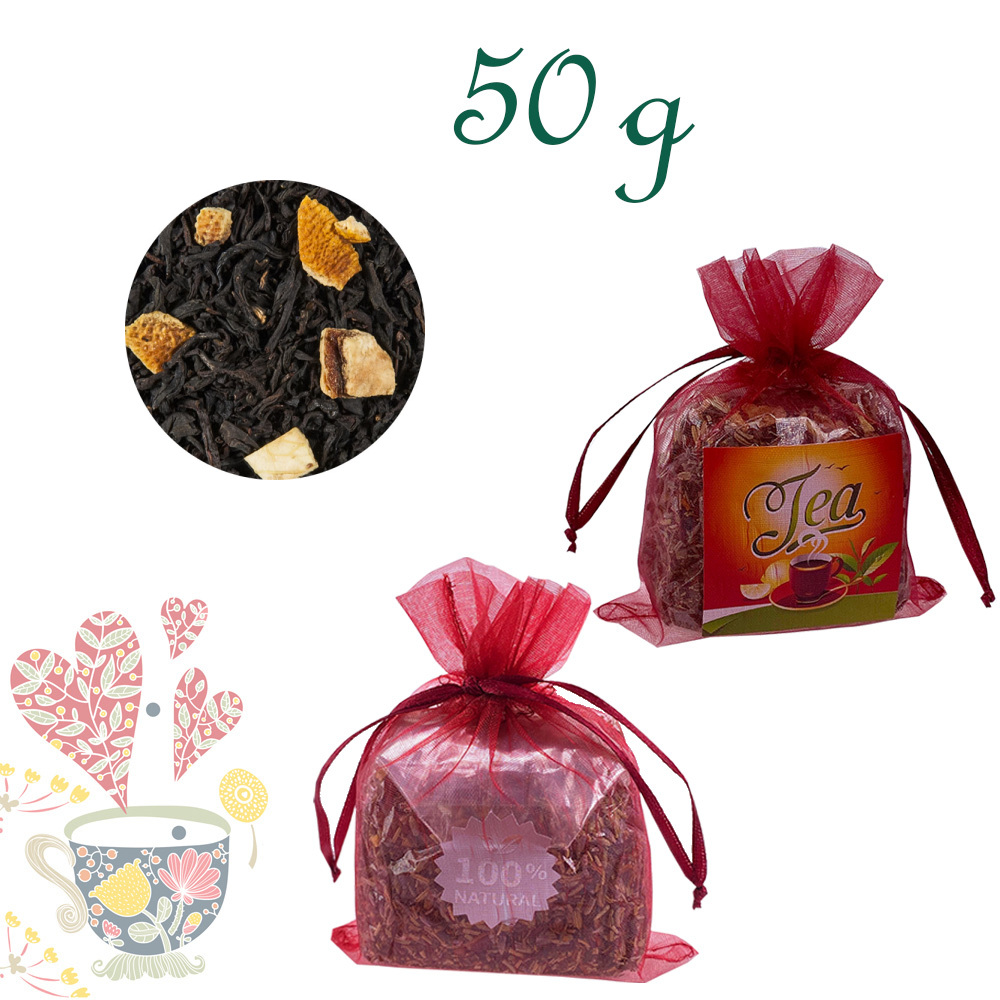 Bei dieser Komposition findet die feine, ausgewogene Orangennote im Schwarztee ihren kräftigen Partner.